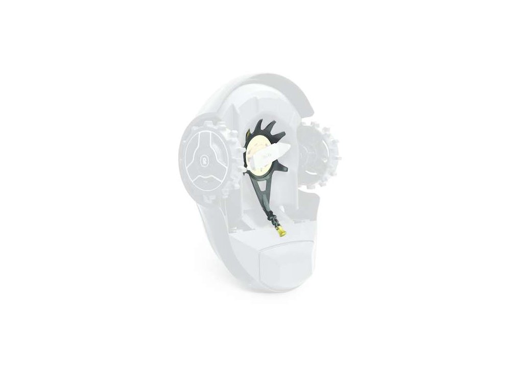Na konci čističe je prvek, který při otáčení stroje zajišťuje otáčení čističe v oblasti řezání. Tím se odstraní přilnavý materiál na dně čisticího zařízenísekačky Robomow.